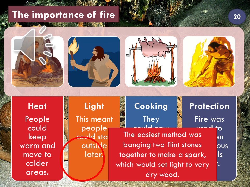 - Cave people, hunter-gatherers, farming and cave paintings and Skara Brae.