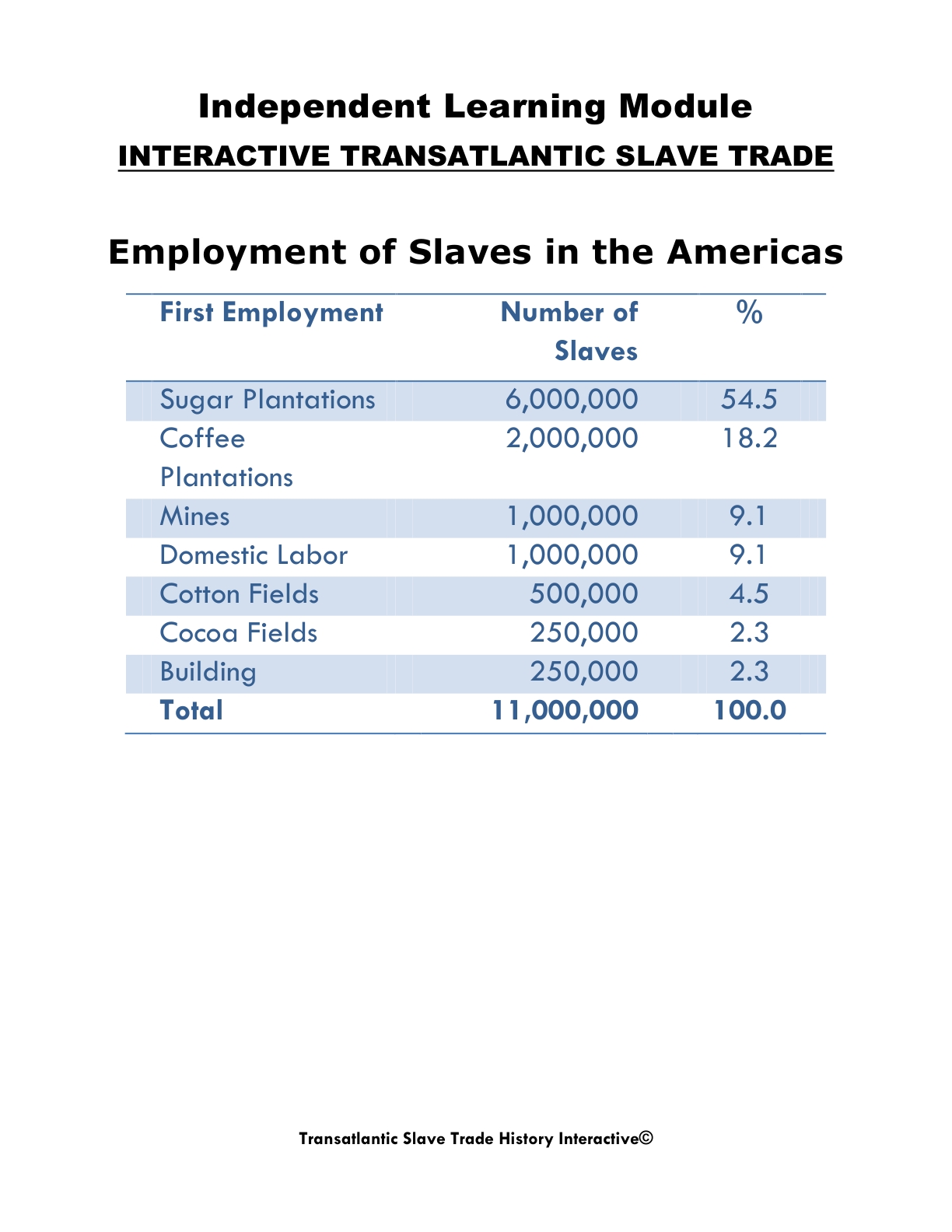 TRANSATLANTIC SLAVE TRADE INTERACTIVE